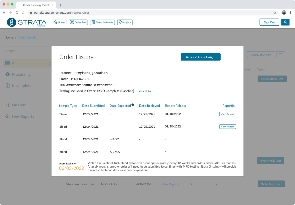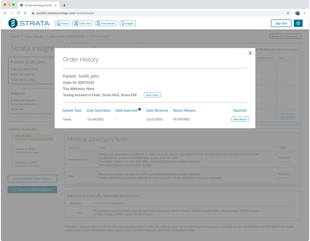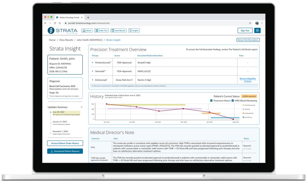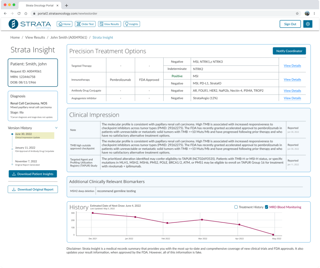With Insight, a dynamic report would share this information for each patient that received testing through Strata. Anytime a new trial became available. The associated physician would be notified, and the patient’s report data would be updated.