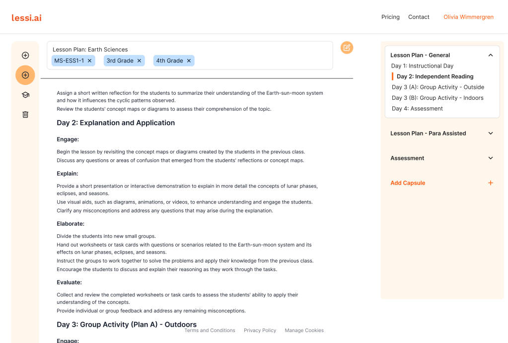 At Lessi.ai, I worked closely with the two co-founders to establish a design system and interface for their innovative educational tool. Lessi.ai empowers teachers to create, modify, and differentiate learning capsules that are specifically tailored to meet the diverse needs of students. The platform was designed to make learning more personalized and effective by allowing educators to craft educational content suited to each student’s unique learning style.