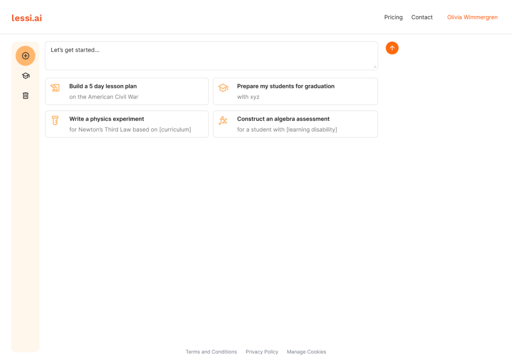 The interface design for Lessi.ai focused on simplicity and ease of use.