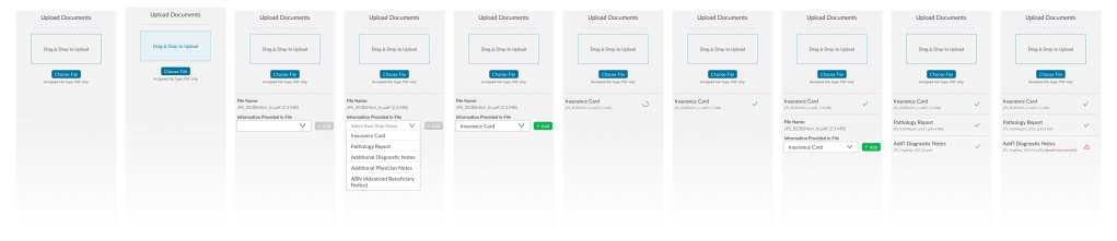 The feature allowed for one user to add documents for any subsection at any step in the form. In other words, a user would be able to add all documentation, save, and then allow another user to submit the form later without retrieving the required documents from outside their access.
