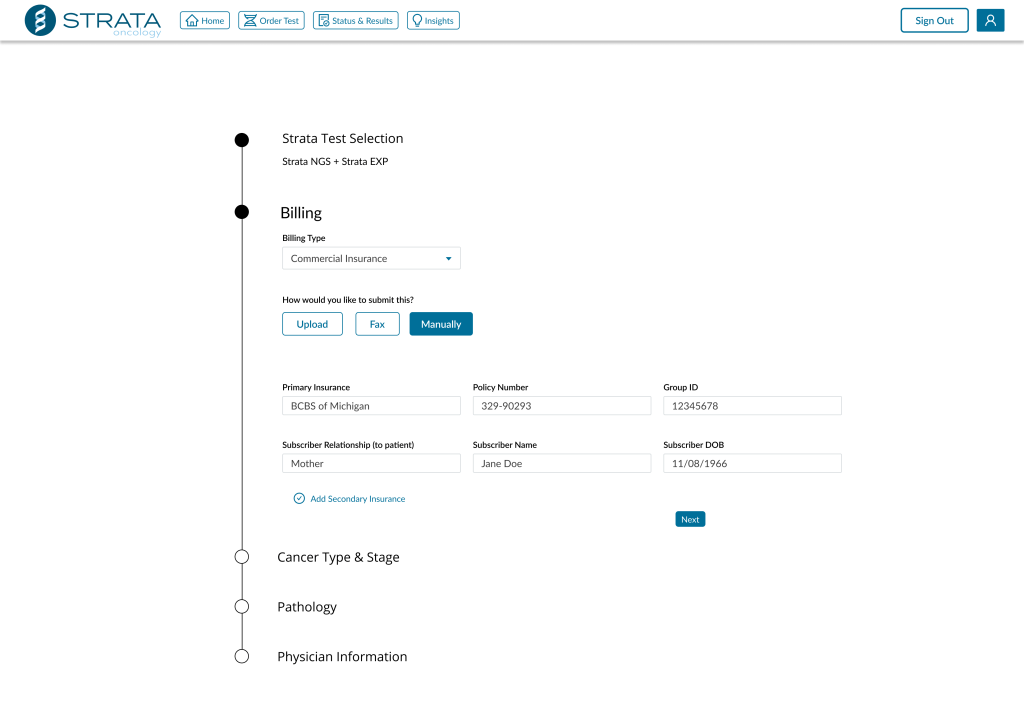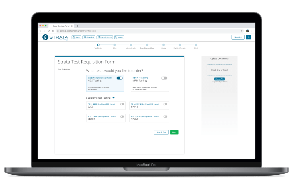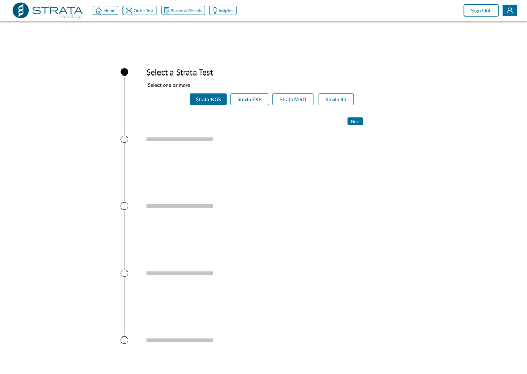 At Strata, our clinical partnerships ordered our testing primarily through our portal interface. With the many different clinical practices operating under differing restrictions, our portal needed to meet the needs of each use case.